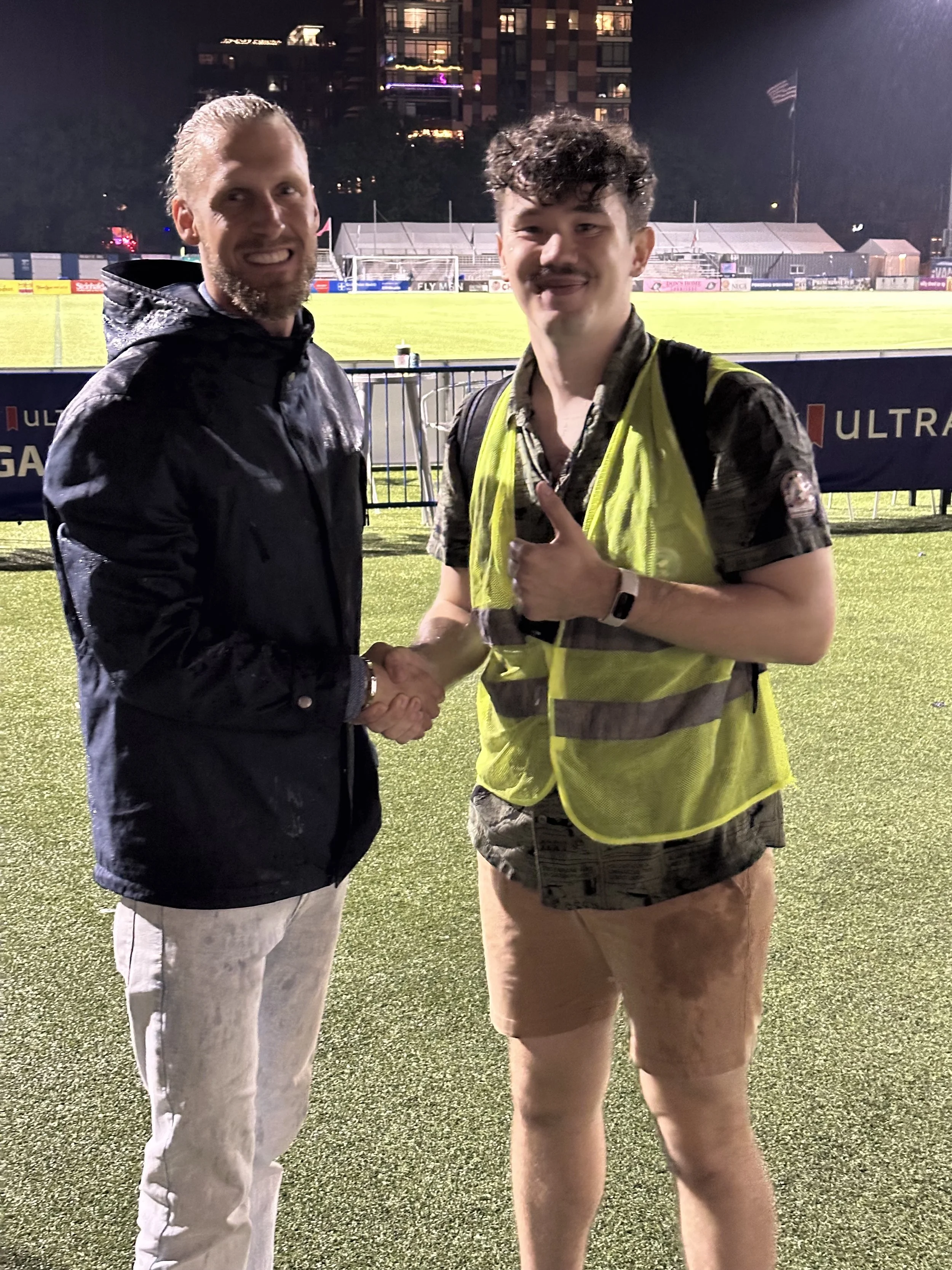 Up first was Tony Halterman. Admittedly, when I first arrived at the stadium I had forgotten he was on their roster, and I wasn’t sure if he’d even recognize me. I immediately felt terrible about that when he walked up to me like I was a family member. The goalkeeper is loving life in Florida, not only serving as the team’s reserve goalkeeper but also as a pseudo-coach. There was even a modeling project for the jersey release early on.